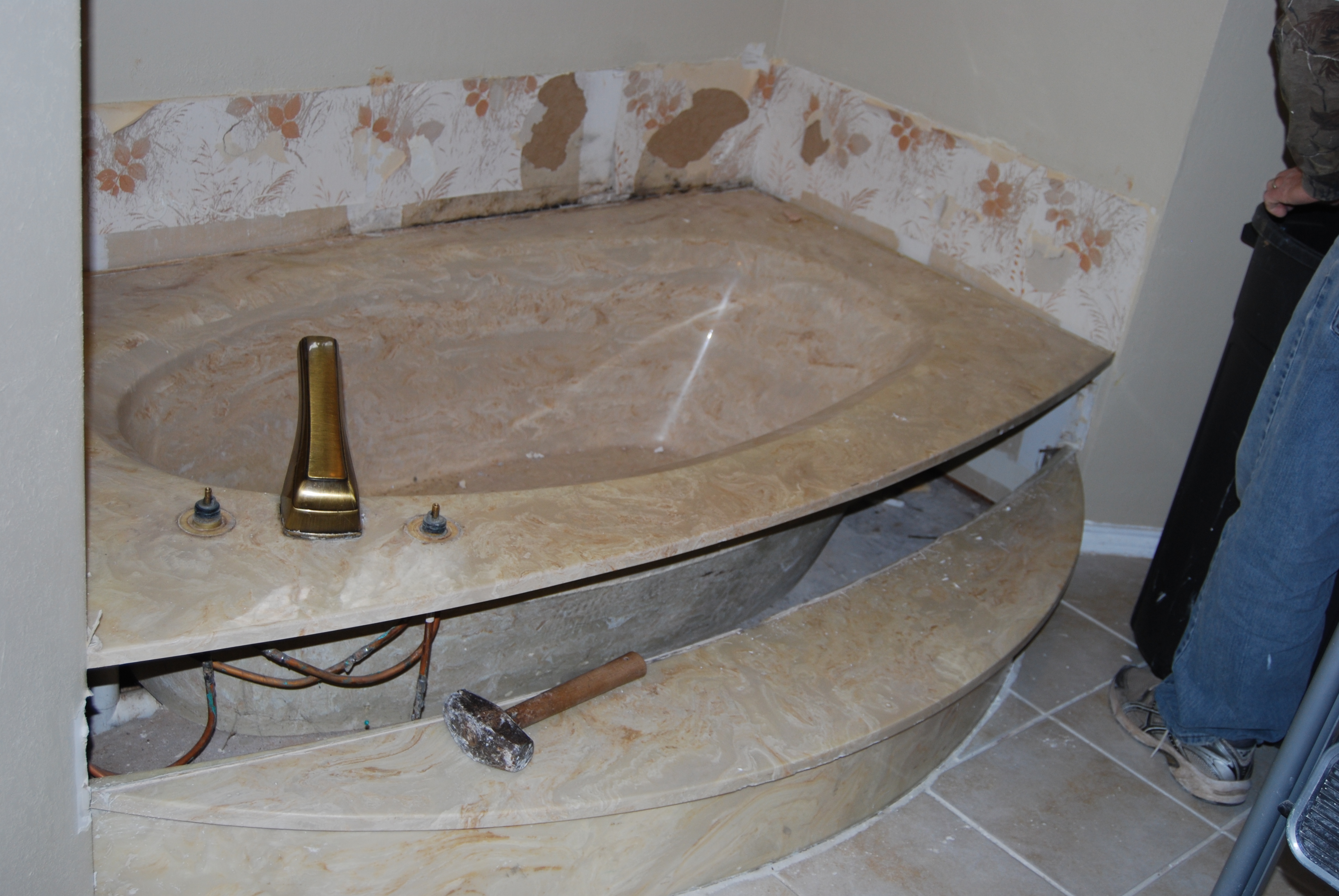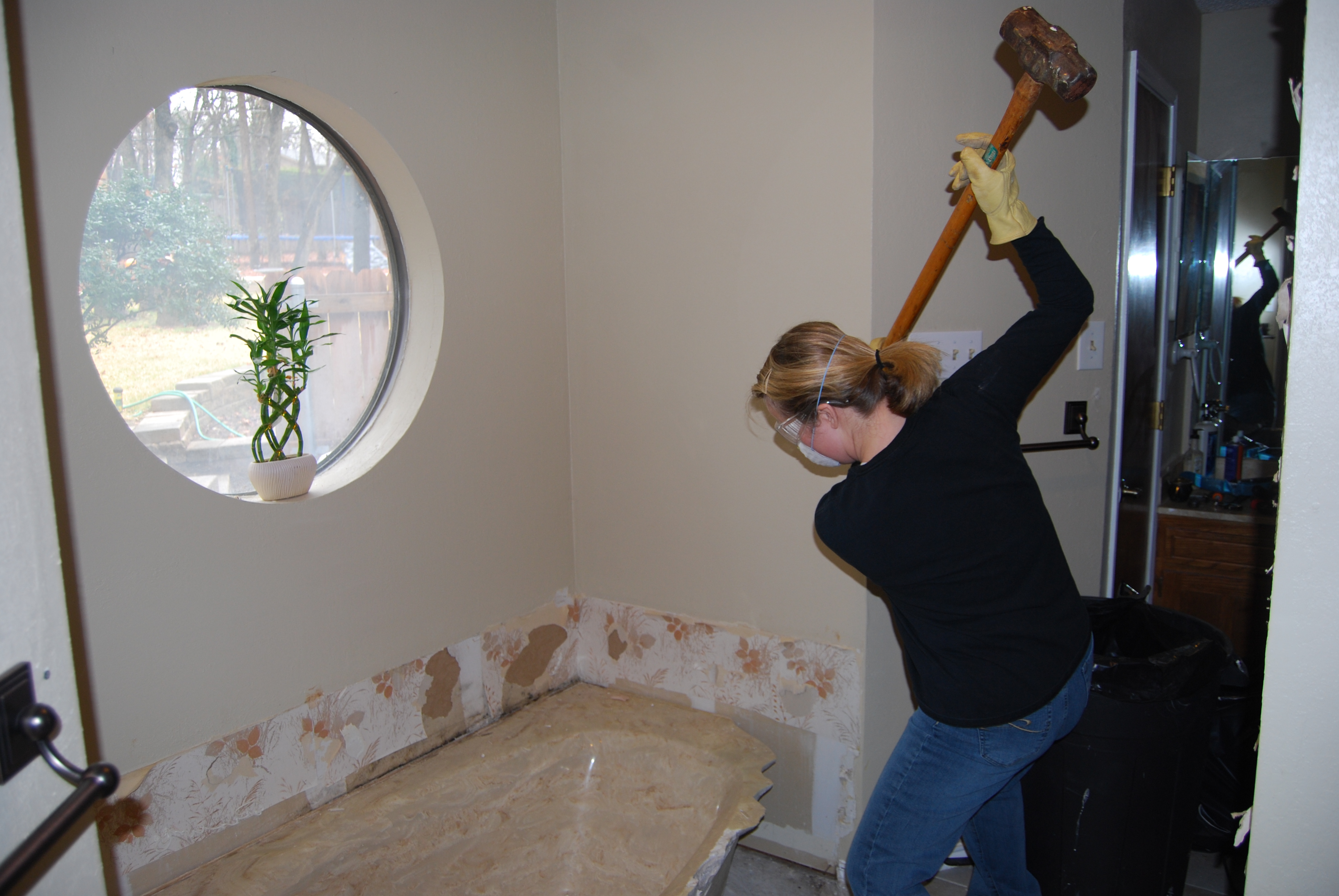 But, as you could imagine, when given a sledge hammer and free reign over the destruction of said bath-tub-o-gross-ness I went. to. town.